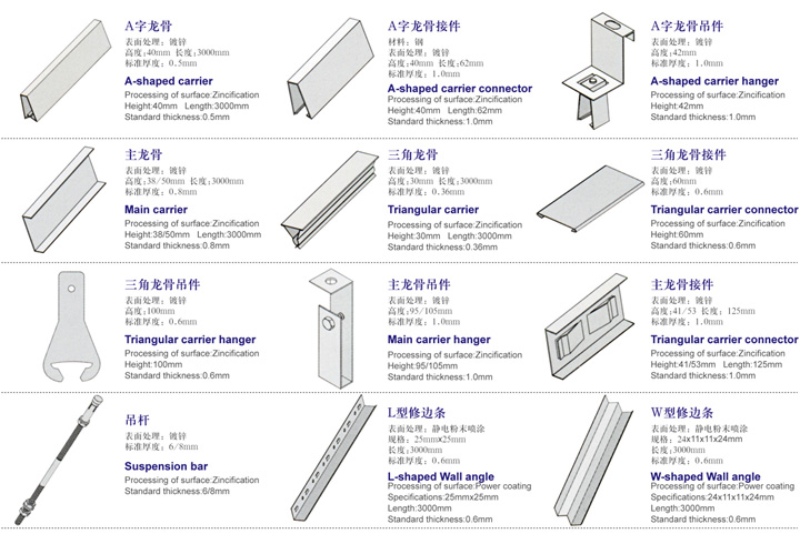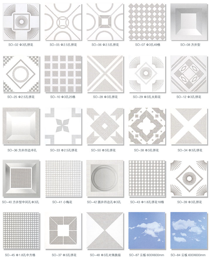 百美金屬公司可為客戶所提供的產品種類:鋁天花片材,鋁天花吊頂成品,鋁天花卷材