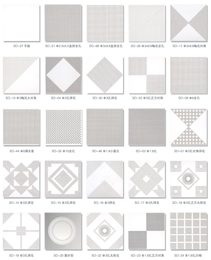 百美牌暗架式方板吊頂,因其產品自身獨特的構造,安裝后吊架隱藏,因視覺效果大氣、流暢平整而受眾多客戶青睞。暗架式方塊吊頂系列可生產多種規格,且第種規格根據折邊類型可分為矮邊直角、高邊直角、高邊斜角。其中,矮邊系列可以節省更多的空間,而高邊系列則更加平穩堅固。同時具備幾十種沖孔花款可供選擇,不僅可以起到美觀裝飾的效果,還能夠通過吸音布起到消音降噪的使用功能。
